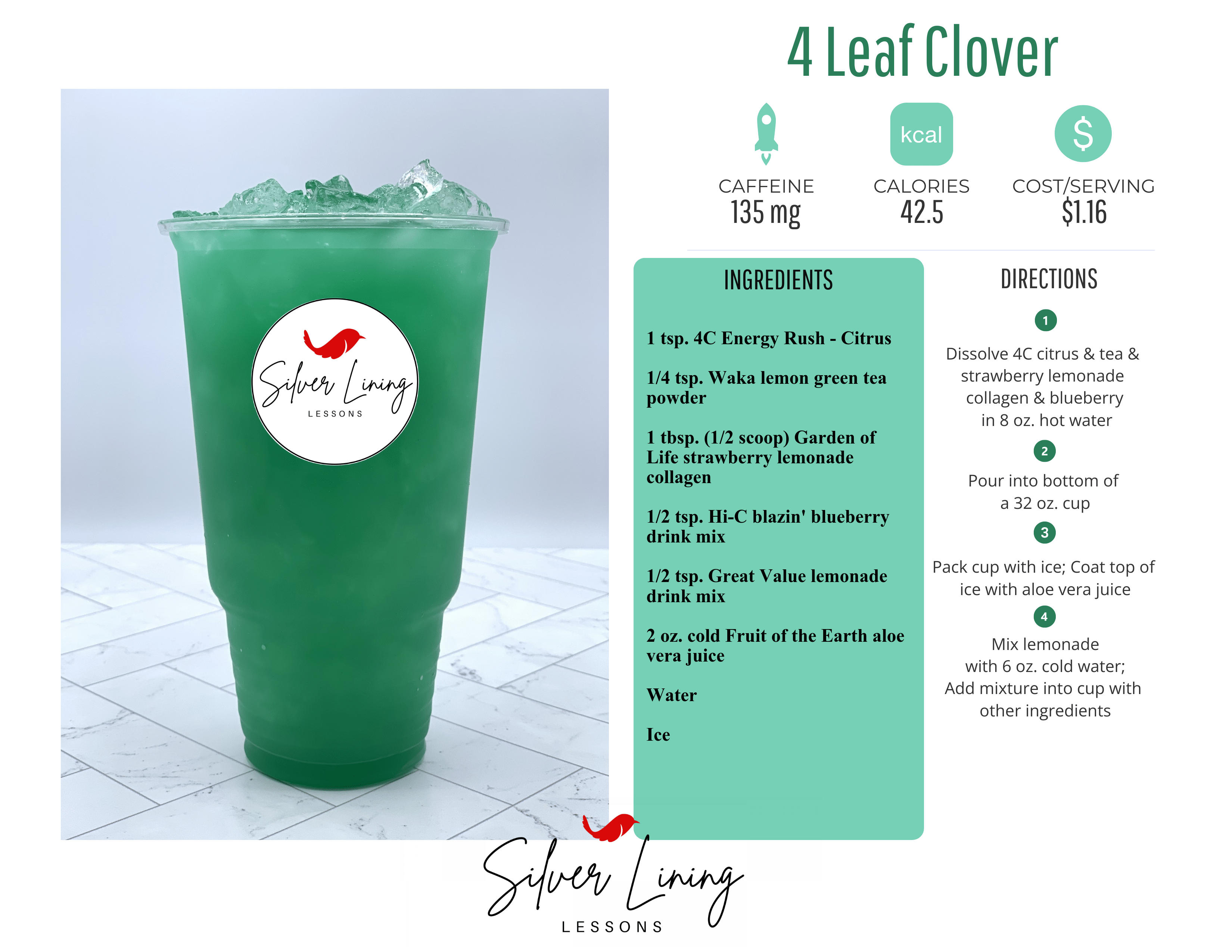 AS ALWAYS, THESE RECIPES DON’T REQUIRE ANY PRICEY PRODUCTS OR SUPPLEMENTS AND ALL COME IN FOR LESS THAN ONE DOLLAR PER TEA!