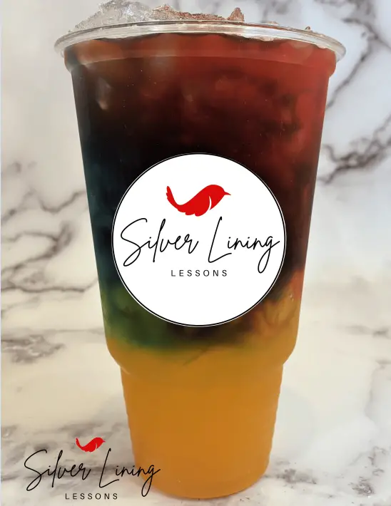 Add berry blue and fruit punch mixtures into cup on opposite sides