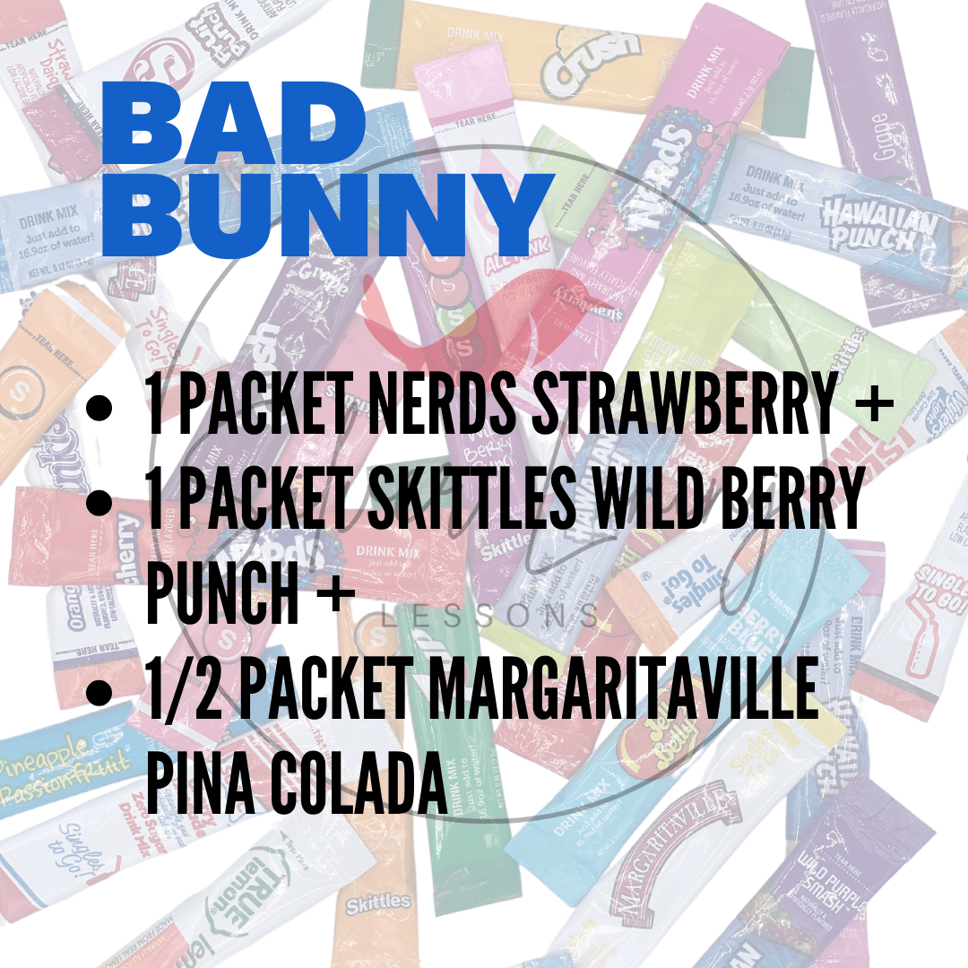 - Most drink mix packets contain about 1 teaspoon of powder. For purposes of these flavored water combinations, 1 full packet is 1 teaspoon; 1/2 packet is 1/2 teaspoon; and 1/4 packet is 1/4 teaspoon.
