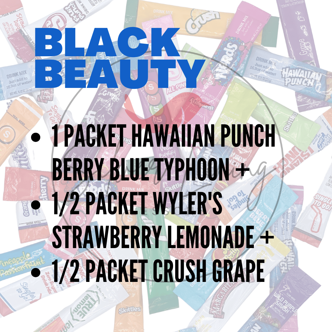 • Most drink mix packets contain about 1 teaspoon of powder. For purposes of these flavored water combinations, 1 full packet is 1 teaspoon; 1/2 packet is 1/2 teaspoon; and 1/4 packet is 1/4 teaspoon.