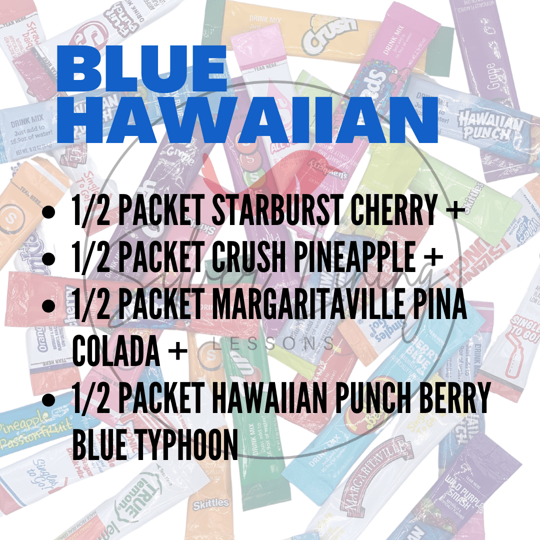 • Most drink mix packets contain about 1 teaspoon of powder. For purposes of these flavored water combinations, 1 full packet is 1 teaspoon; 1/2 packet is 1/2 teaspoon; and 1/4 packet is 1/4 teaspoon.