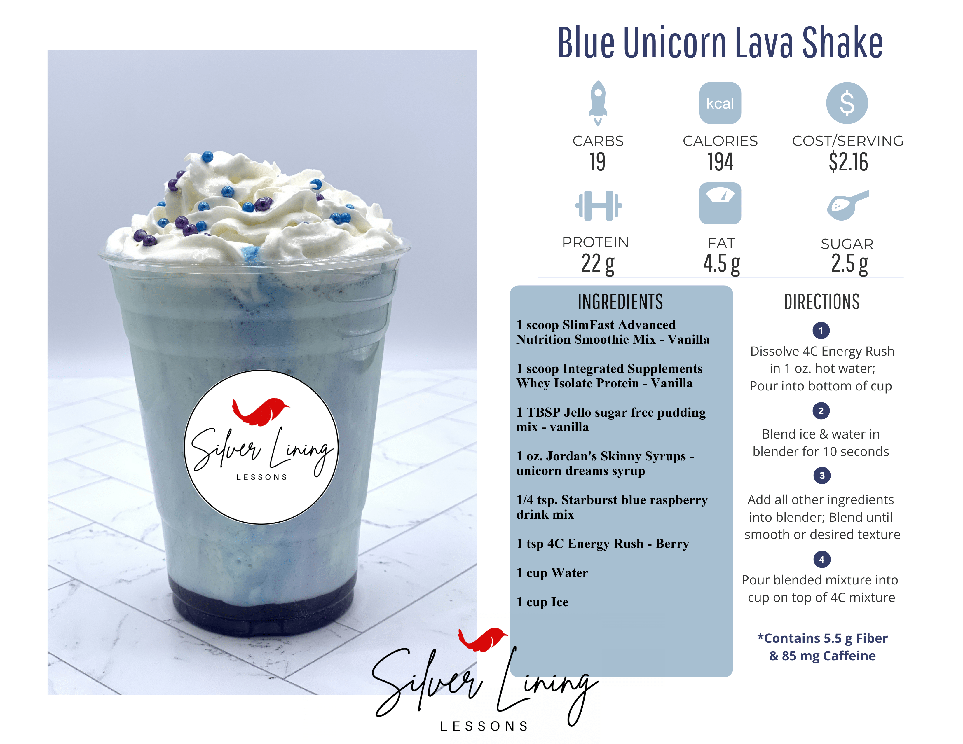 - 1/4 tsp. Starburst blue raspberry drink mix