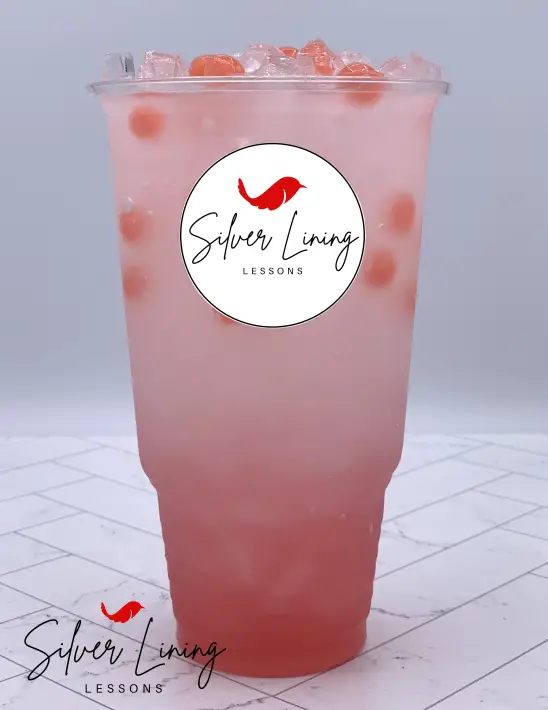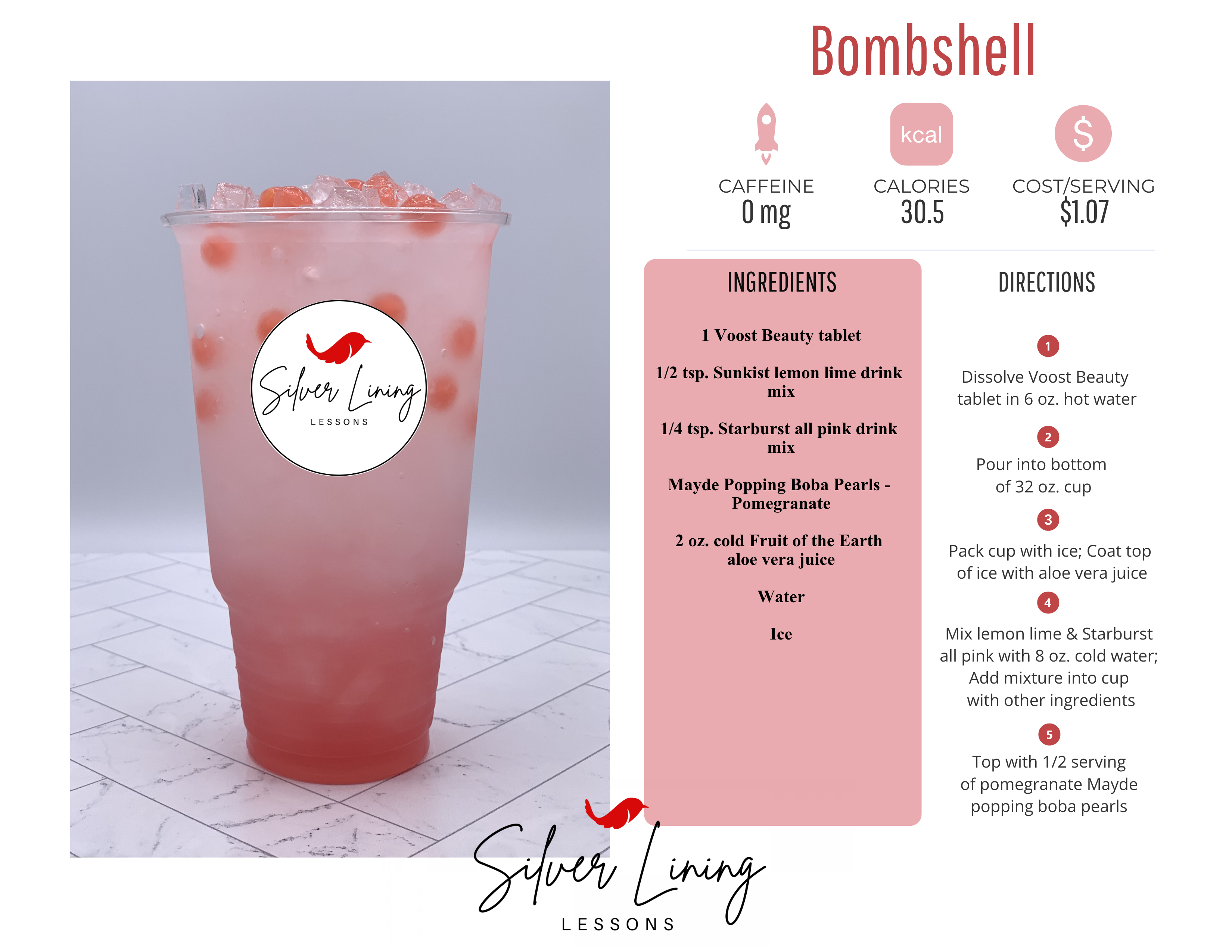 This lemon lime & all pink drink is packed with Voost Beauty & topped with boba.