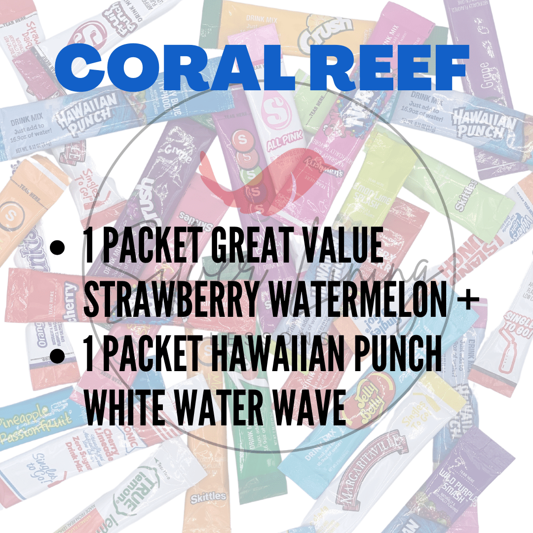 • Most drink mix packets contain about 1 teaspoon of powder. For purposes of these flavored water combinations, 1 full packet is 1 teaspoon; 1/2 packet is 1/2 teaspoon; and 1/4 packet is 1/4 teaspoon.