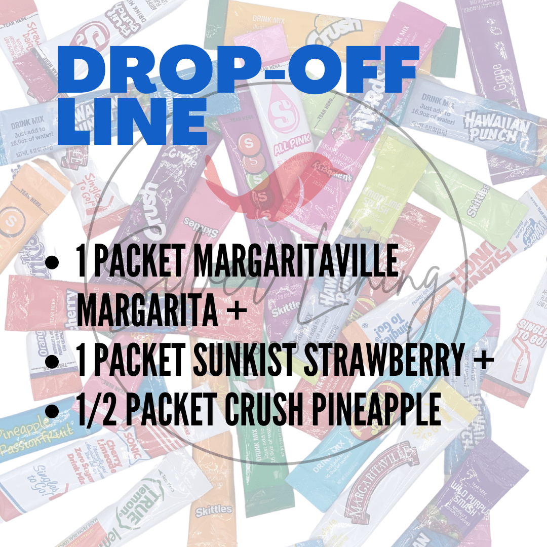 - Most drink mix packets contain about 1 teaspoon of powder. For purposes of these flavored water combinations, 1 full packet is 1 teaspoon; 1/2 packet is 1/2 teaspoon; and 1/4 packet is 1/4 teaspoon.
