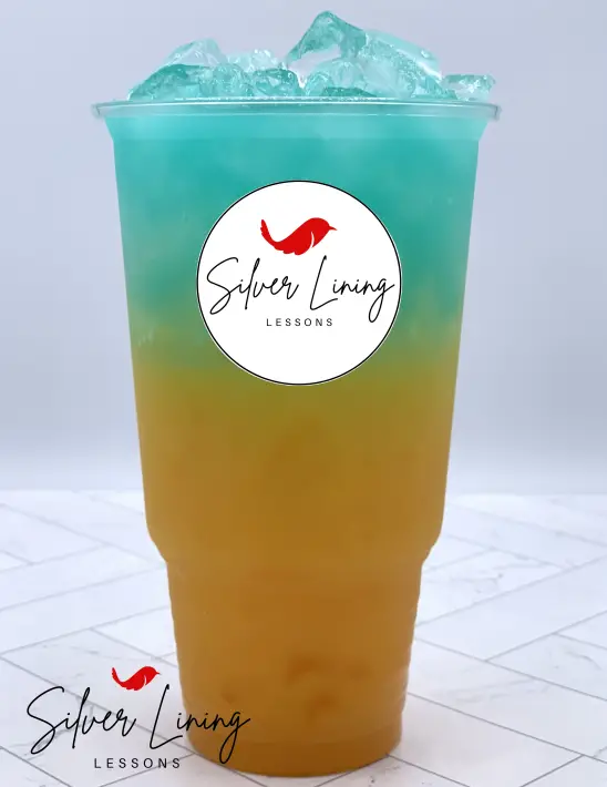 Dissolve lemonade & blue raspberry & pina colada in 6 oz. cold water