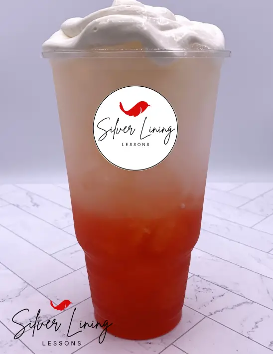 This tea is a tropical mix of coconut, pina colada & strawberry topped with Cool Whip!