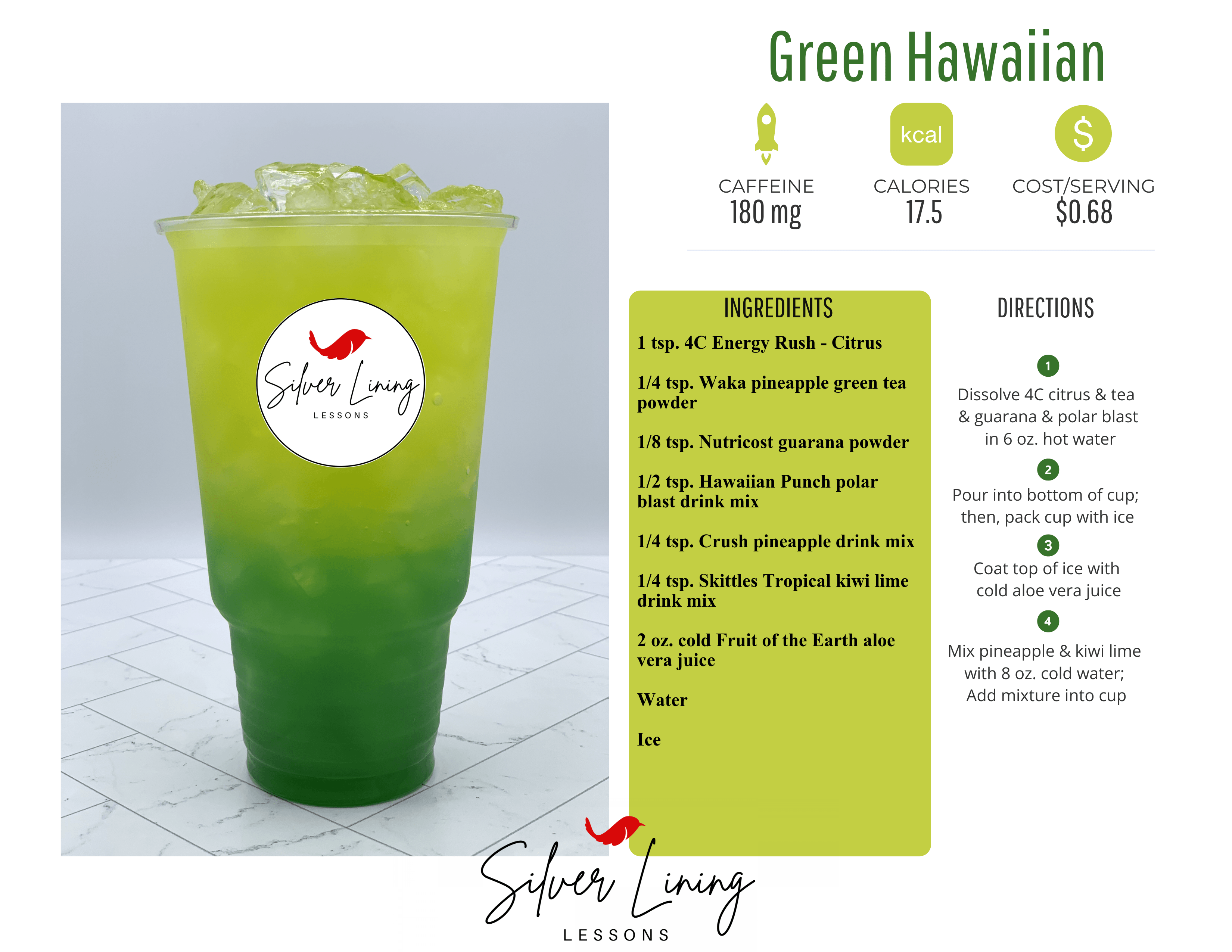 Polar blast, pineapple & kiwi lime give this tea a cool green ombre look with a great tangy flavor.