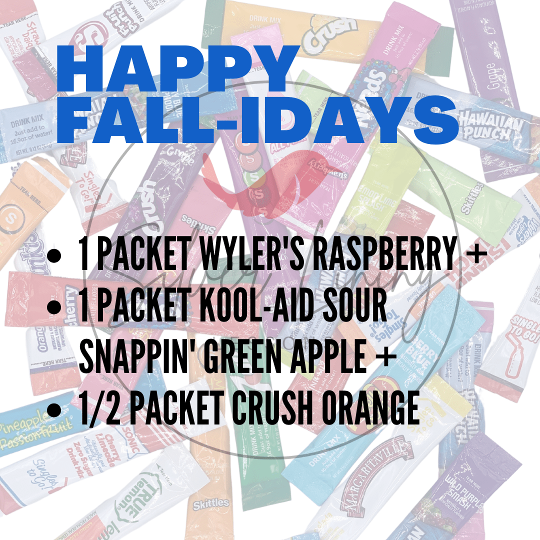• Most drink mix packets contain about 1 teaspoon of powder. For purposes of these flavored water combinations, 1 full packet is 1 teaspoon; 1/2 packet is 1/2 teaspoon; and 1/4 packet is 1/4 teaspoon.