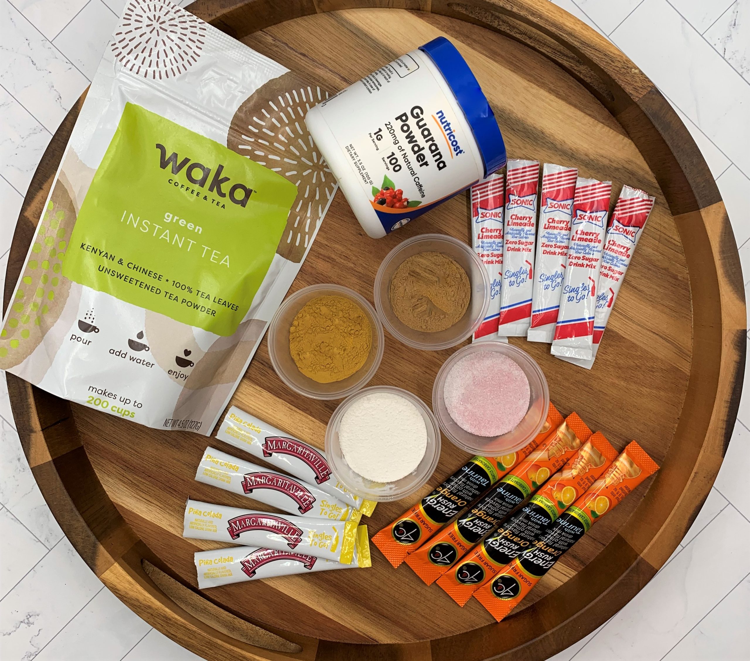 First, pick your favorite tea or drink & make it per the recipe. If you are using one of our tea recipes, keep the layers separated.