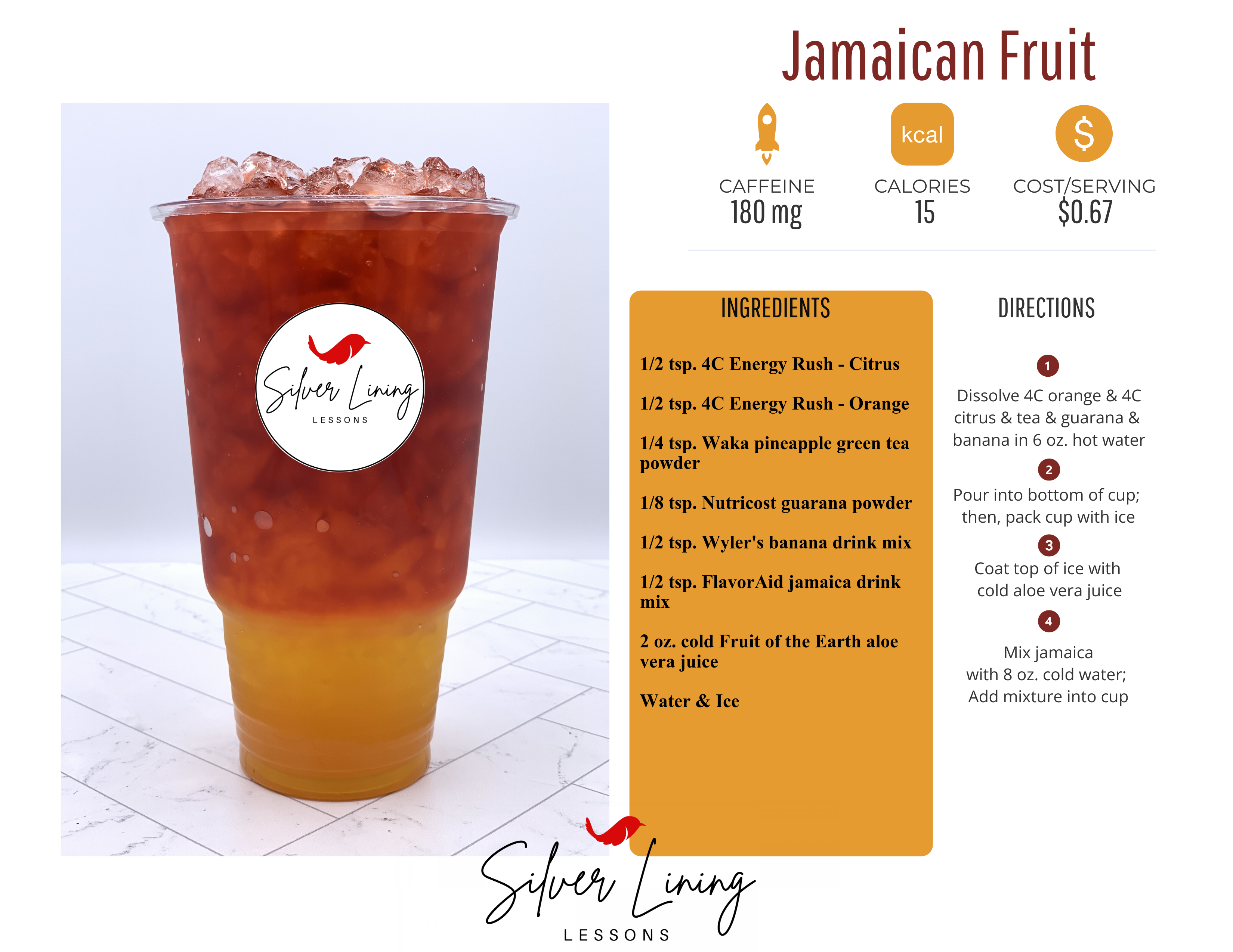 - 1/2 tsp. FlavorAid jamaica drink mix
