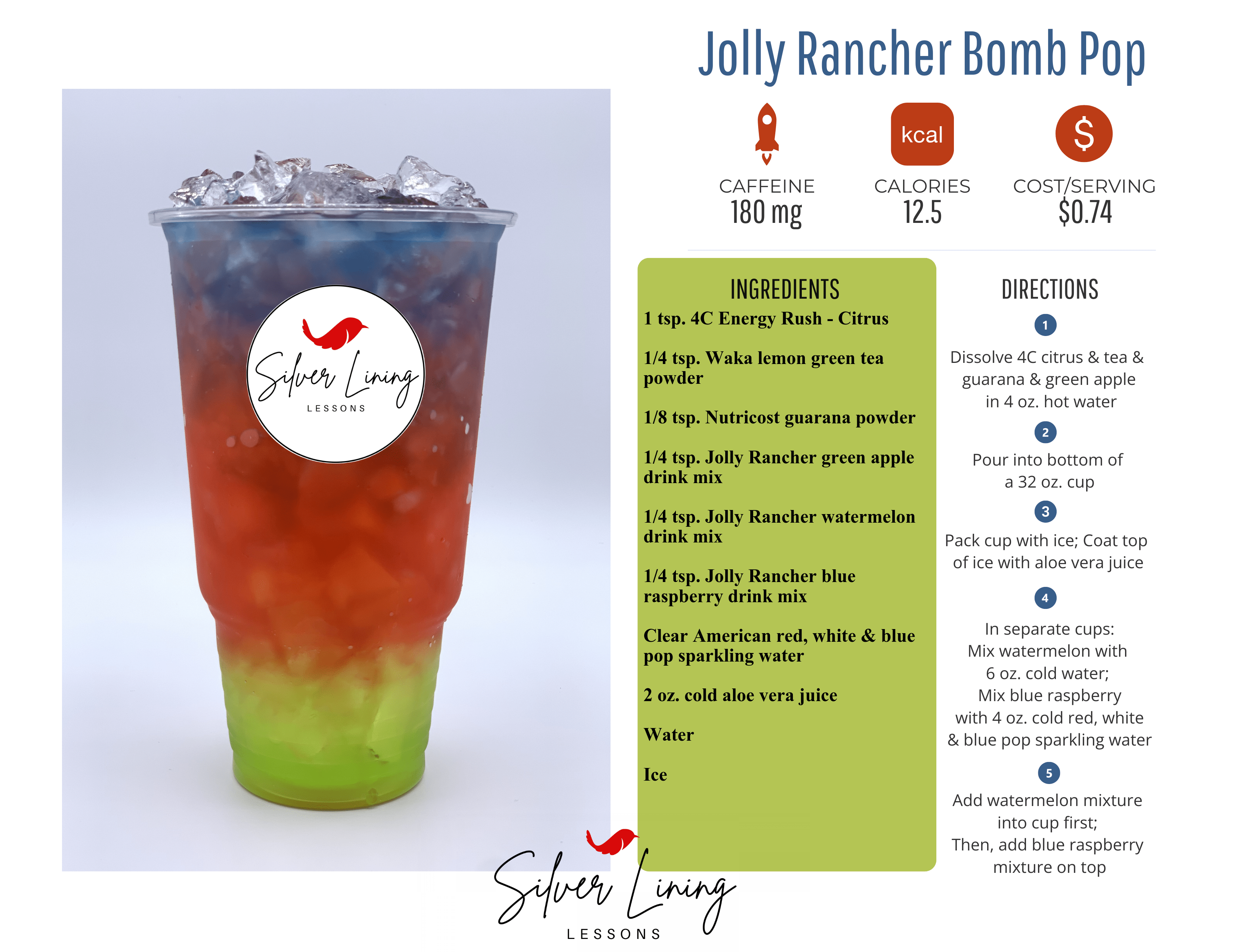 This is our loaded tea take on the Jolly Rancher Bomb Pop