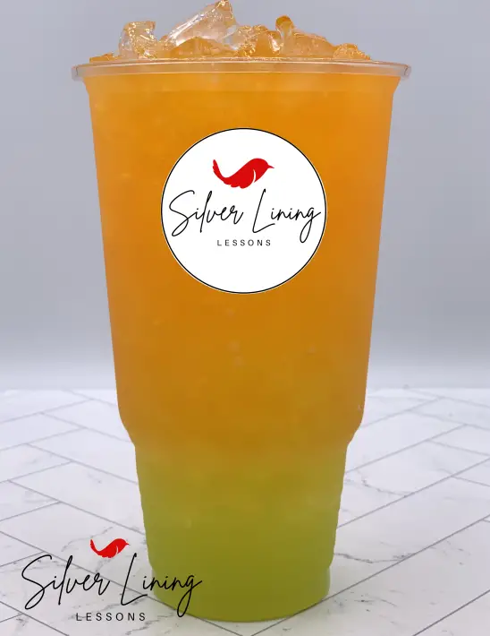 This tea is a blend of Tang, kiwi lime & Wyler’s outrageous orange with a kick of sparkling water.