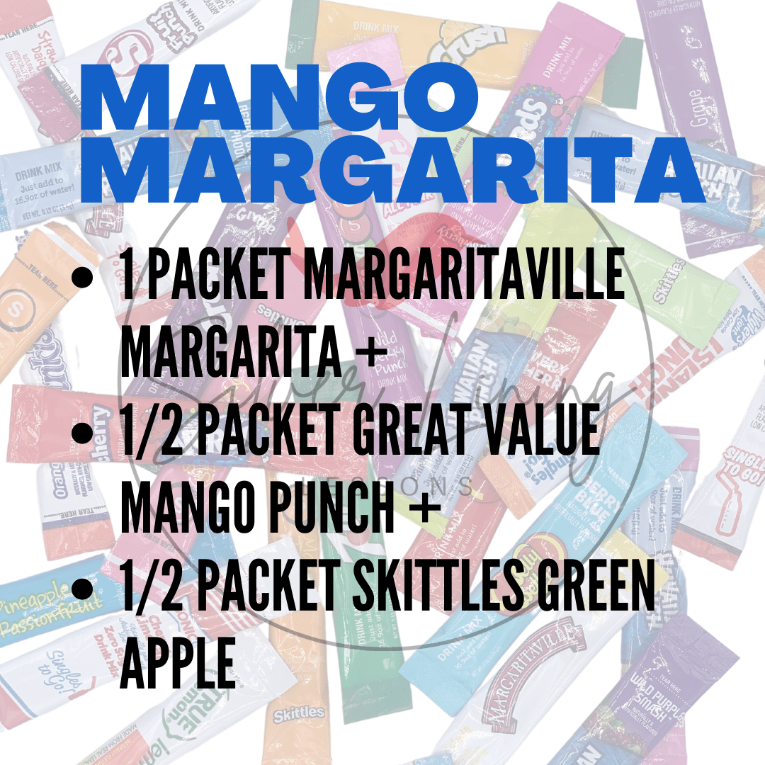 • Most drink mix packets contain about 1 teaspoon of powder. For purposes of these flavored water combinations, 1 full packet is 1 teaspoon; 1/2 packet is 1/2 teaspoon; and 1/4 packet is 1/4 teaspoon.