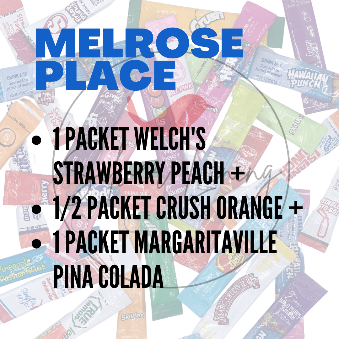 • Most drink mix packets contain about 1 teaspoon of powder. For purposes of these flavored water combinations, 1 full packet is 1 teaspoon; 1/2 packet is 1/2 teaspoon; and 1/4 packet is 1/4 teaspoon.