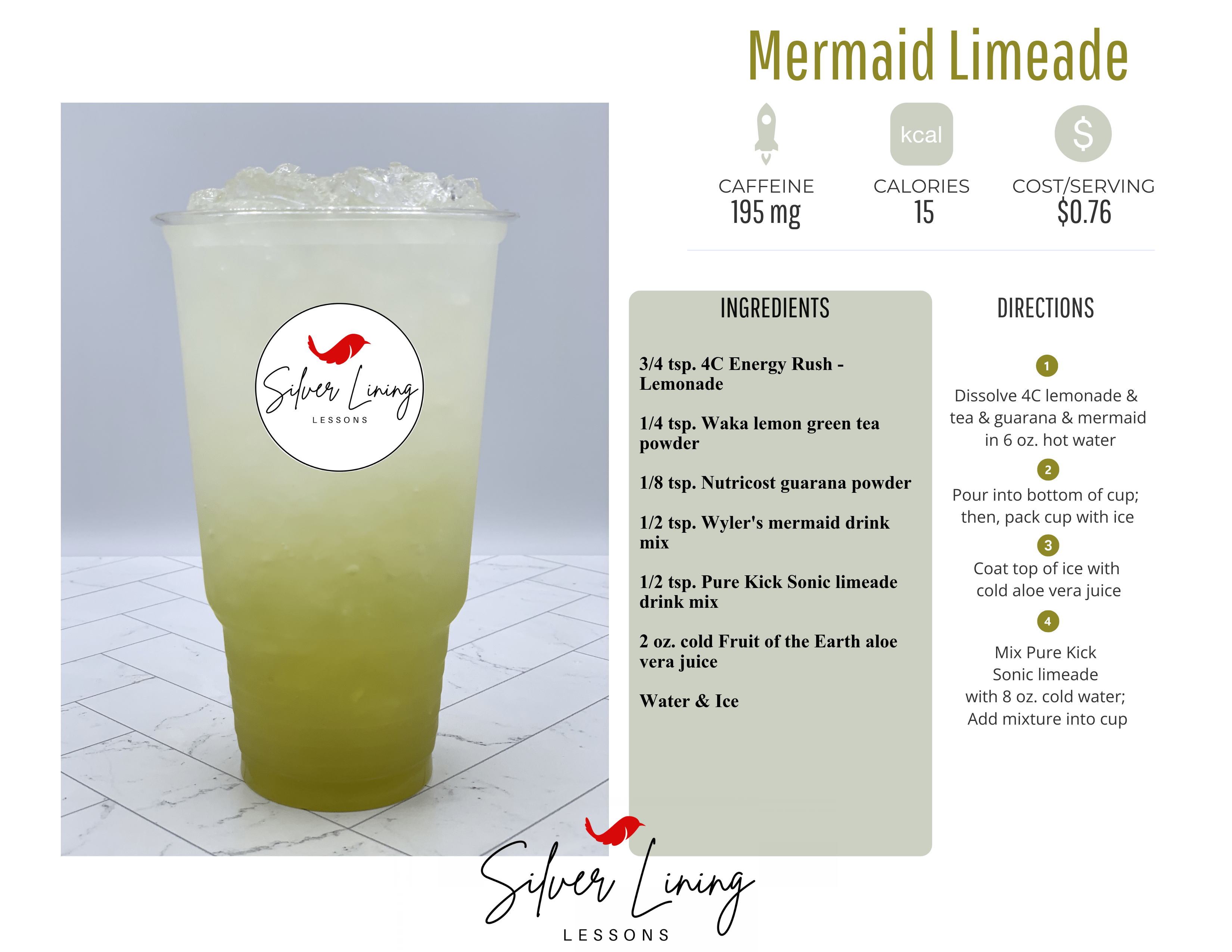 This tea pairs the newest Pure Kick Sonic limeade & Wyler’s mermaid drink mix.