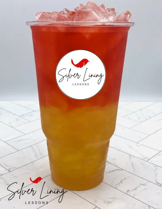 This tea has Kool-Aid Retro rock-a-dile red and banana syrup.
