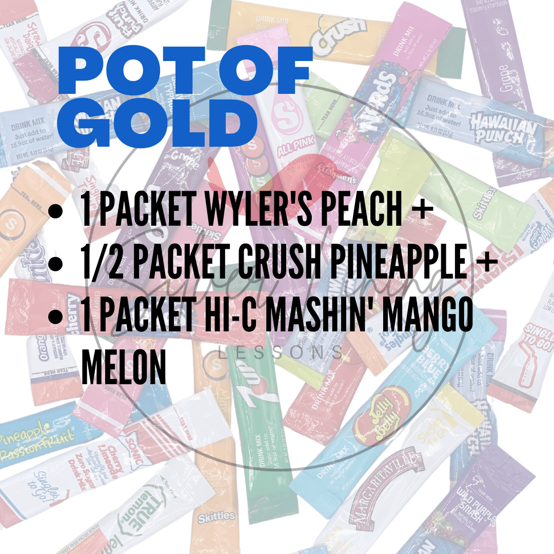• Most drink mix packets contain about 1 teaspoon of powder. For purposes of these flavored water combinations, 1 full packet is 1 teaspoon; 1/2 packet is 1/2 teaspoon; and 1/4 packet is 1/4 teaspoon.