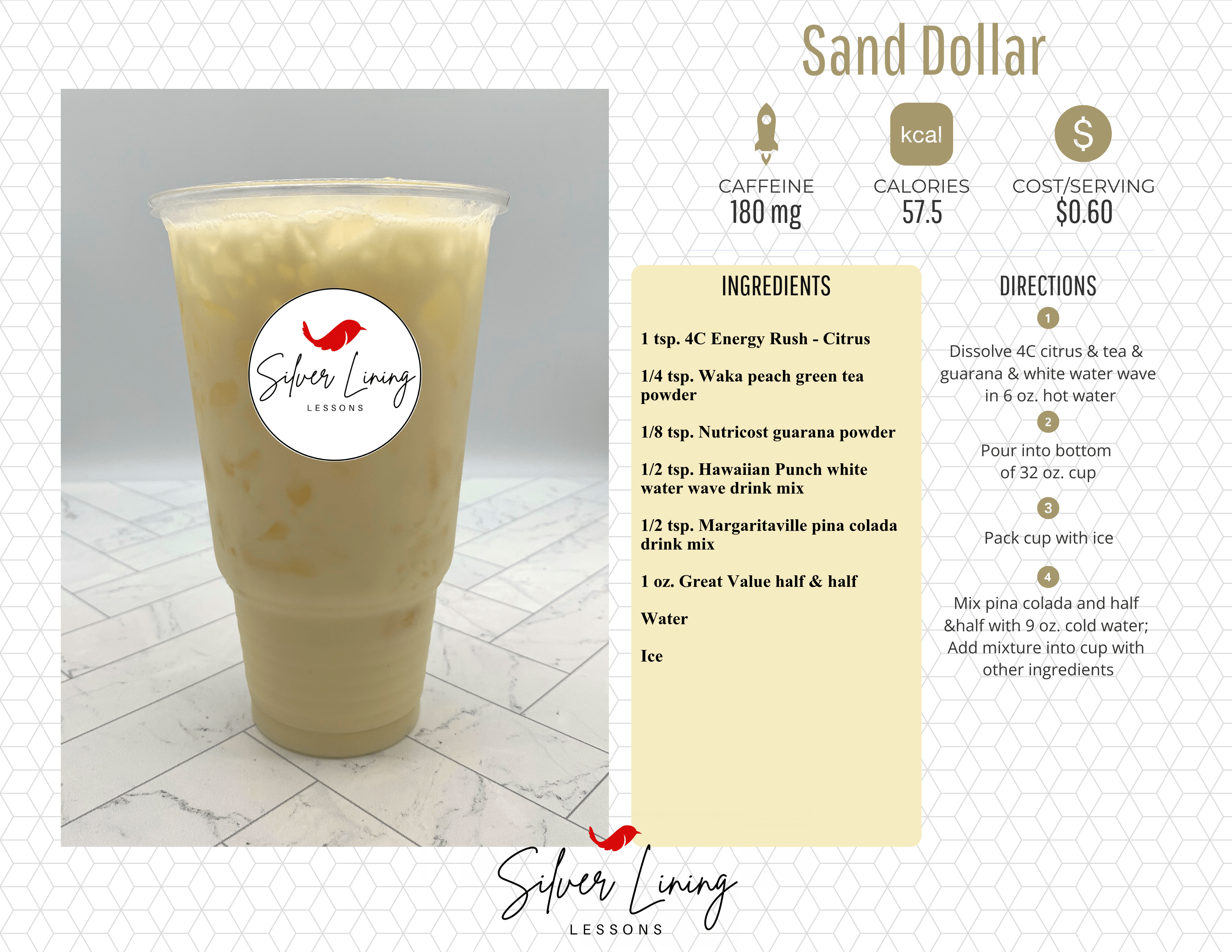 This beachy blend of white water wave and pina colada with a splash of half & half is one of our Sandbar Loaded Teas.