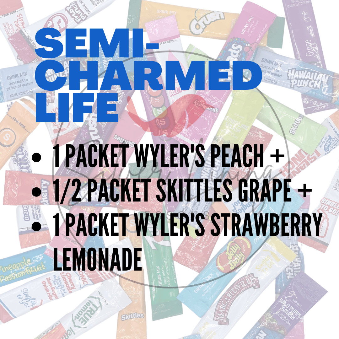 • Most drink mix packets contain about 1 teaspoon of powder. For purposes of these flavored water combinations, 1 full packet is 1 teaspoon; 1/2 packet is 1/2 teaspoon; and 1/4 packet is 1/4 teaspoon.