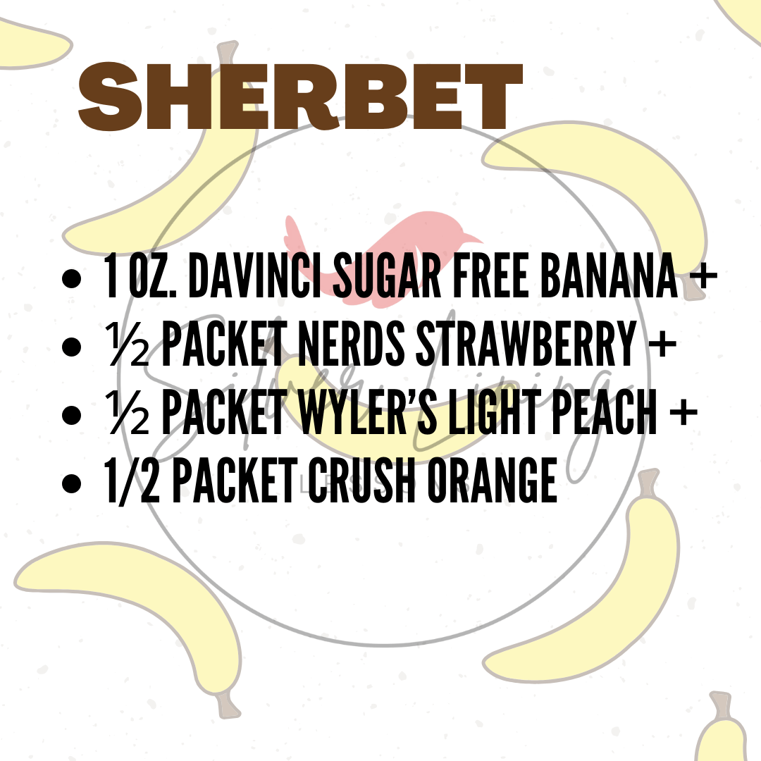 • All ingredients listed in ounces are Jordan’s Skinny Syrups unless otherwise stated.