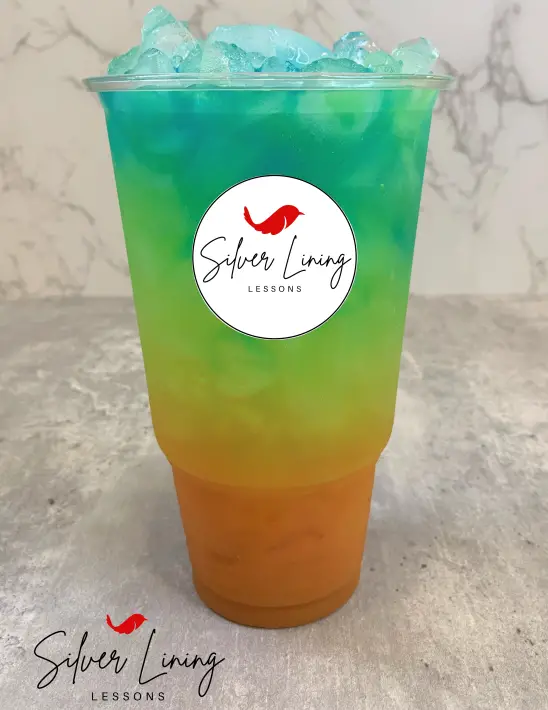 It’s a tropical tea with pina colada, kiwi lime and blue raspberry.