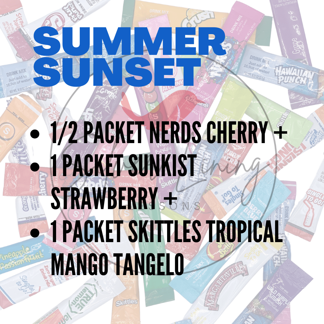 • Most drink mix packets contain about 1 teaspoon of powder. For purposes of these flavored water combinations, 1 full packet is 1 teaspoon; 1/2 packet is 1/2 teaspoon; and 1/4 packet is 1/4 teaspoon.