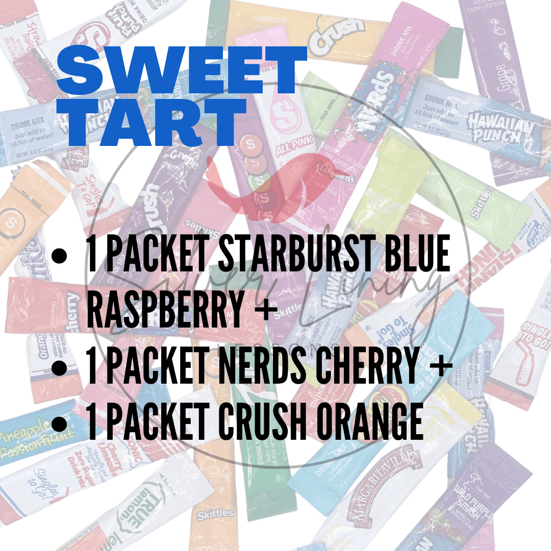 • Most drink mix packets contain about 1 teaspoon of powder. For purposes of these flavored water combinations, 1 full packet is 1 teaspoon; 1/2 packet is 1/2 teaspoon; and 1/4 packet is 1/4 teaspoon.