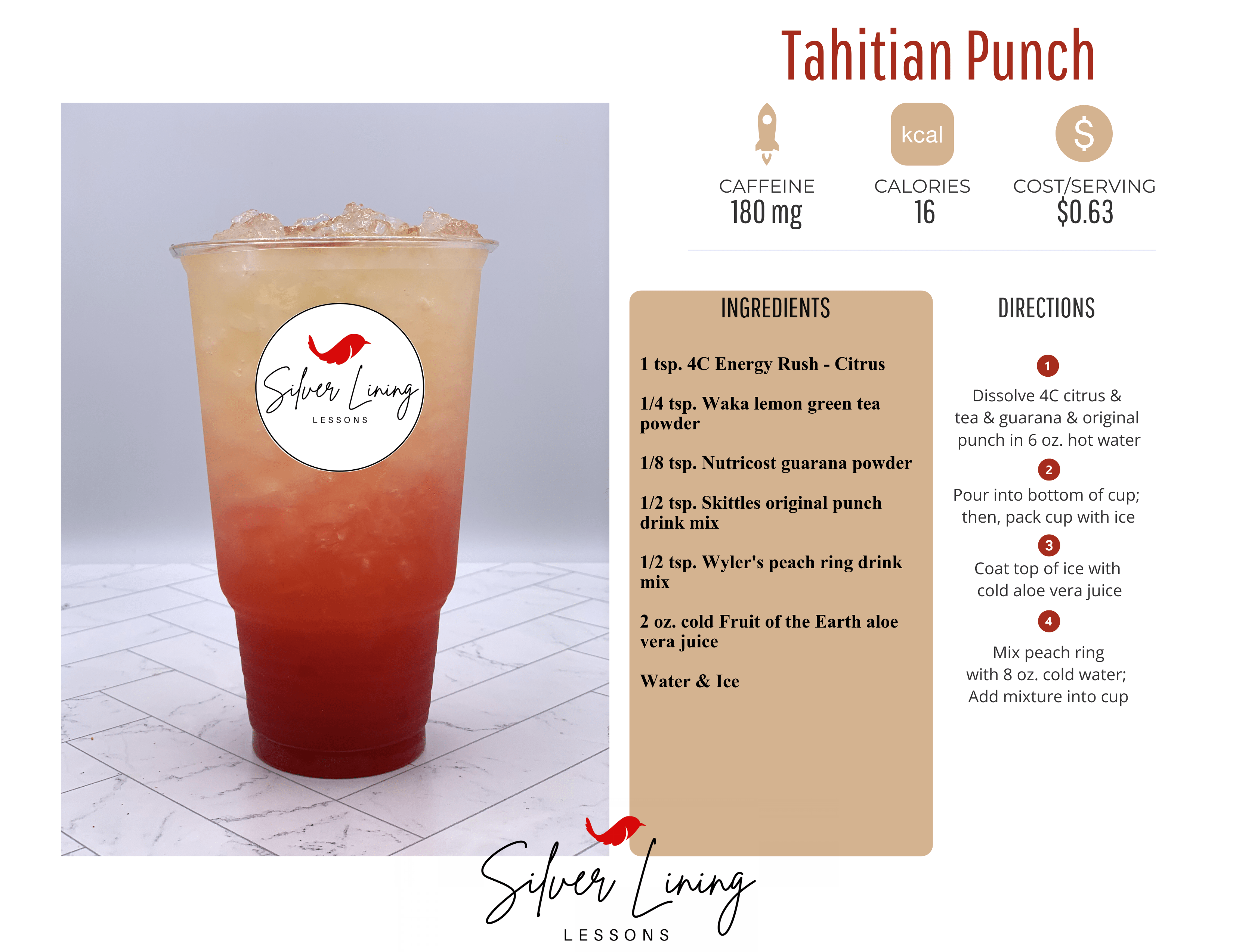 Remember that you can add instant tea powder and guarana powder into any tea as your caffeine/energy component. It will not alter the flavor of your tea, but it will give you a clean, high quality form of caffeine without the extra additives found in some of the other mixes