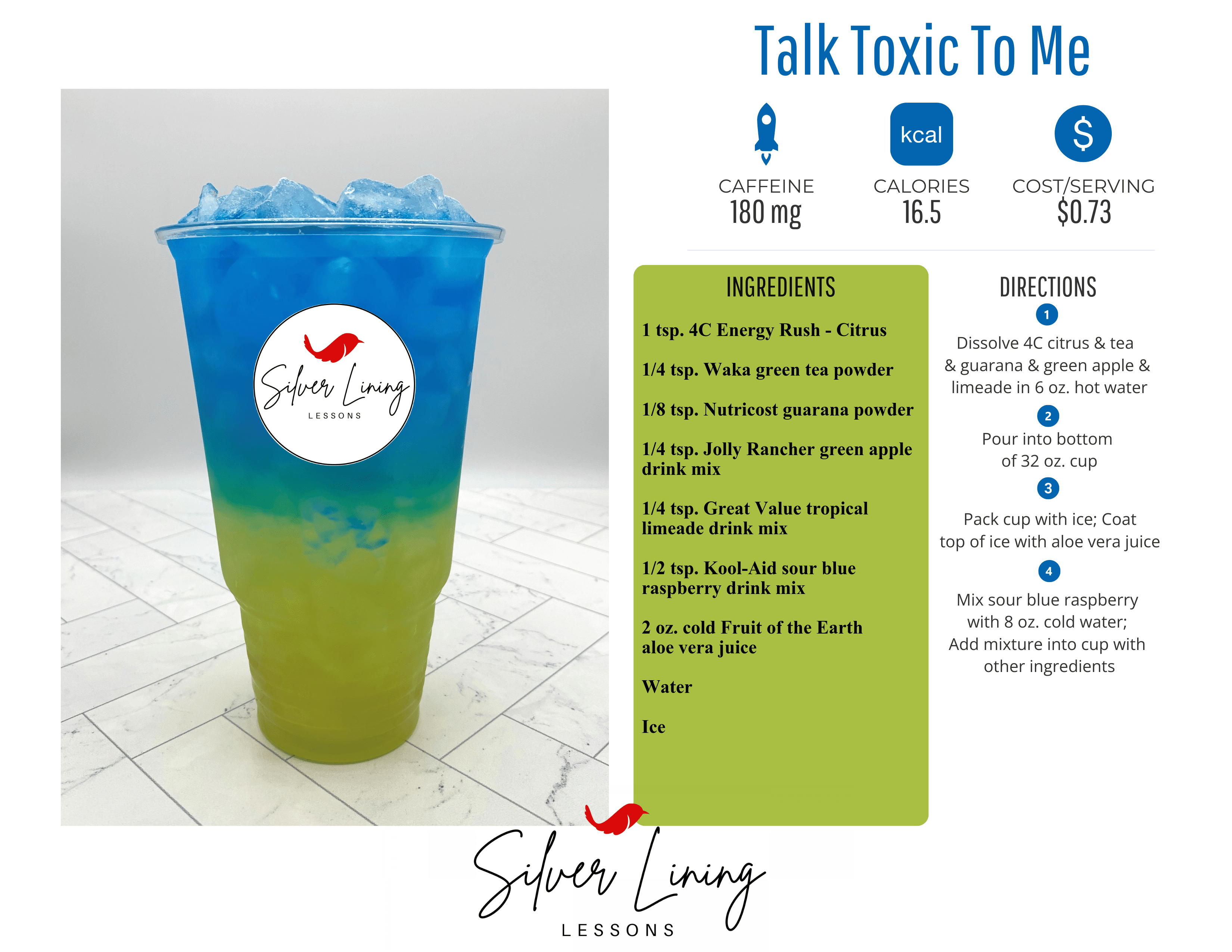 Mix sour blue raspberry with 8 oz. cold water
