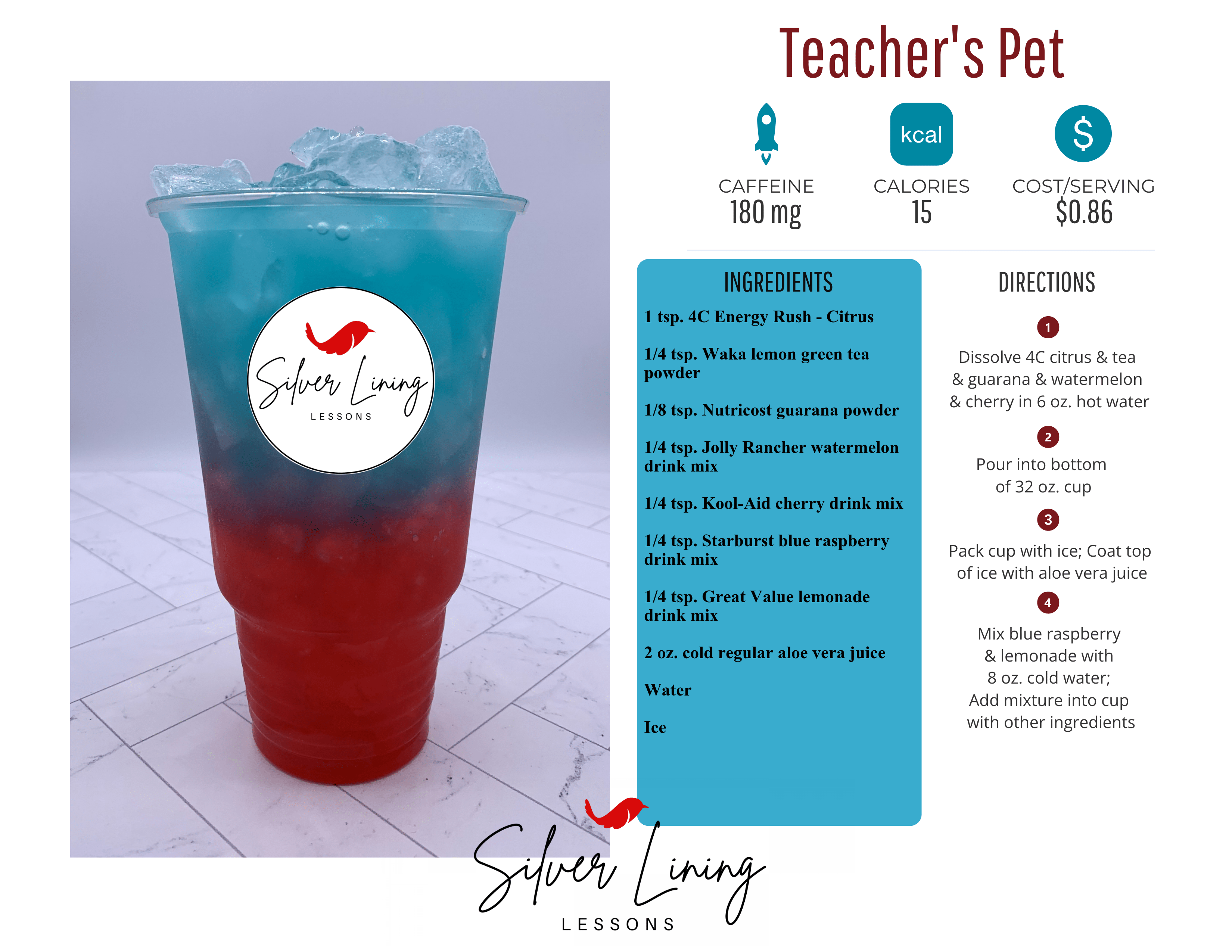 - 1/4 tsp. Starburst blue raspberry drink mix