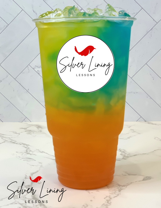 A colorful, tropical tea with peach, melon, pineapple and blue raspberry.