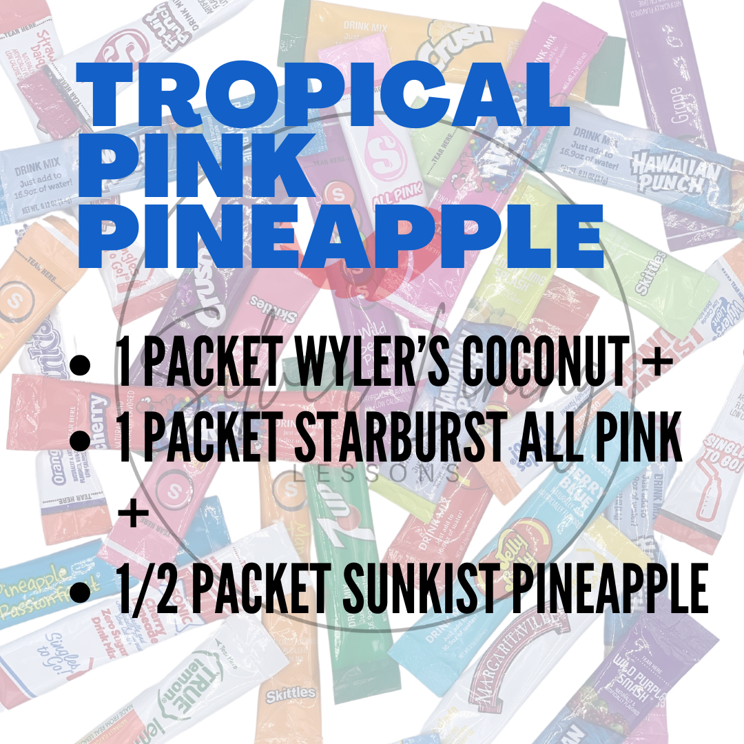 • Most drink mix packets contain about 1 teaspoon of powder. For purposes of these flavored water combinations, 1 full packet is 1 teaspoon; 1/2 packet is 1/2 teaspoon; and 1/4 packet is 1/4 teaspoon.