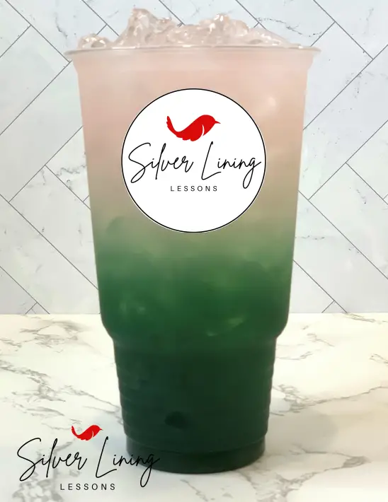 This berry tea has lemonade, blue raspberry and Starburst all pink.