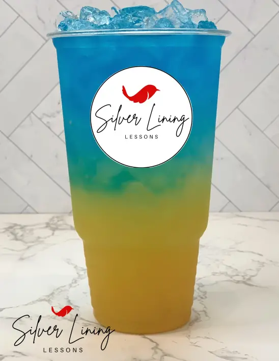 This citrus tea is a mix of pineapple, pina colada, and berry blue typhoon.