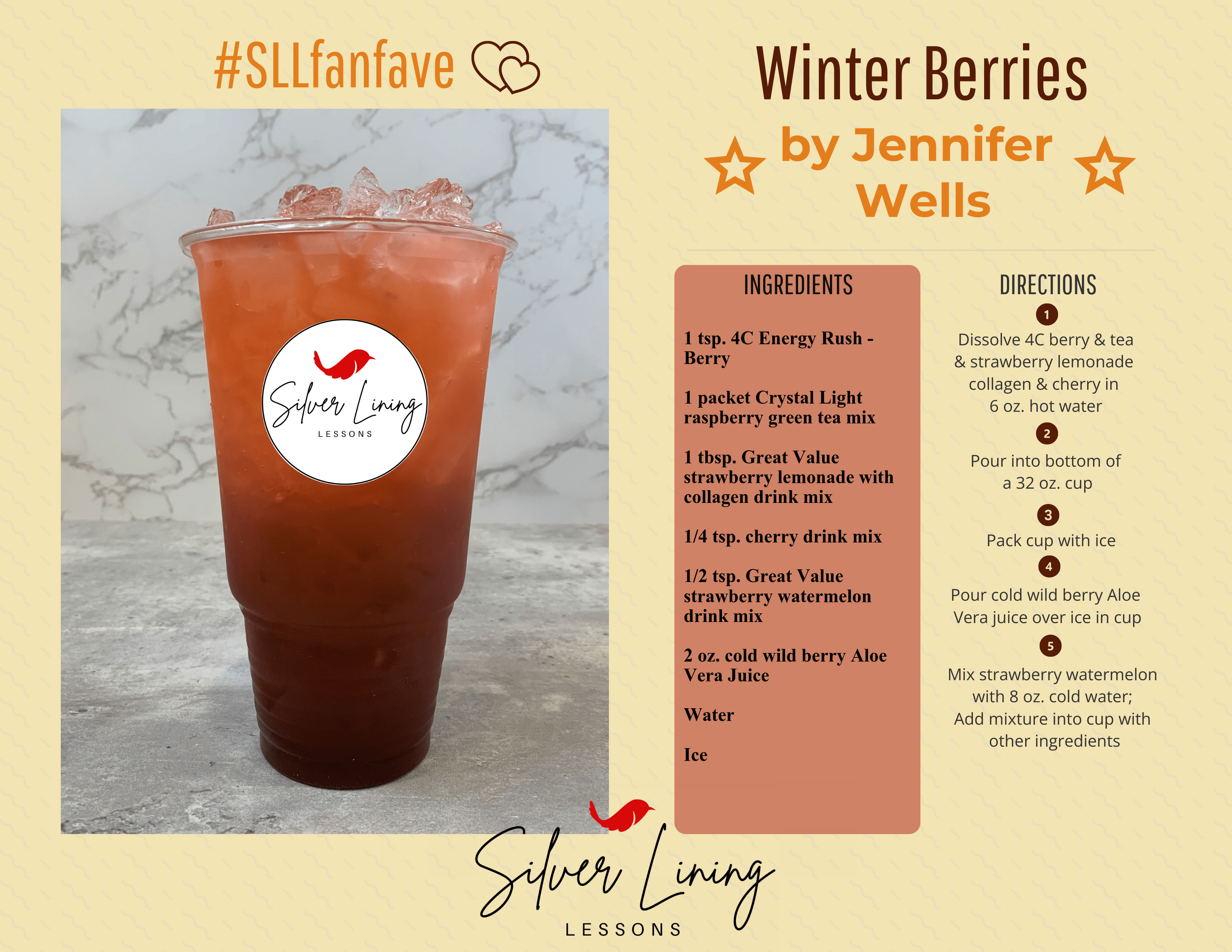 - 1 tbsp. Great Value strawberry lemonade with collagen drink mix