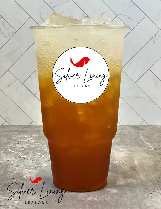 It’s an orange tea with Ener-C for the boost of vitamins, cinnamon syrup and Fuji apple sparkling water.